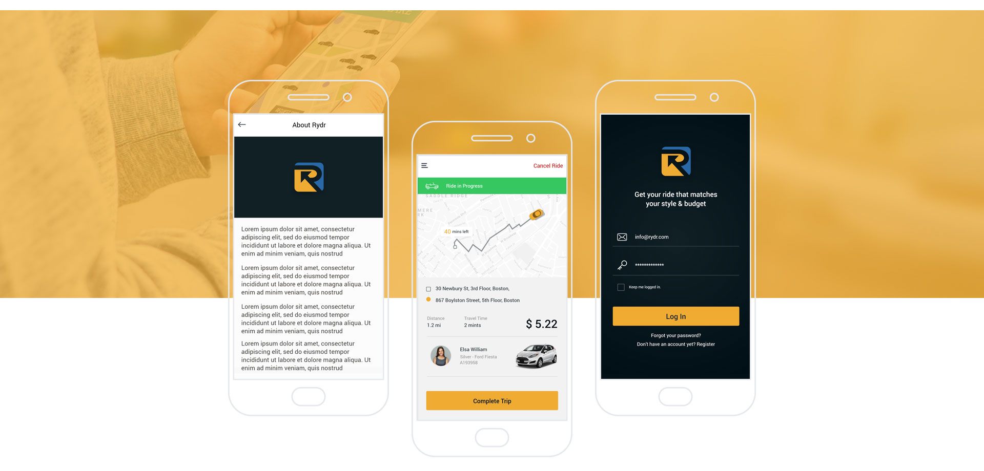 The RYDR app and associated services allow users to get to any destination with comfort and ease. Drivers registered with the service are trained and screened ensuring safety as well as the highest levels of professionalism.