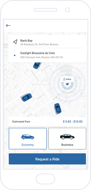 destinations as well as receive cost estimates for ride fares in advance.